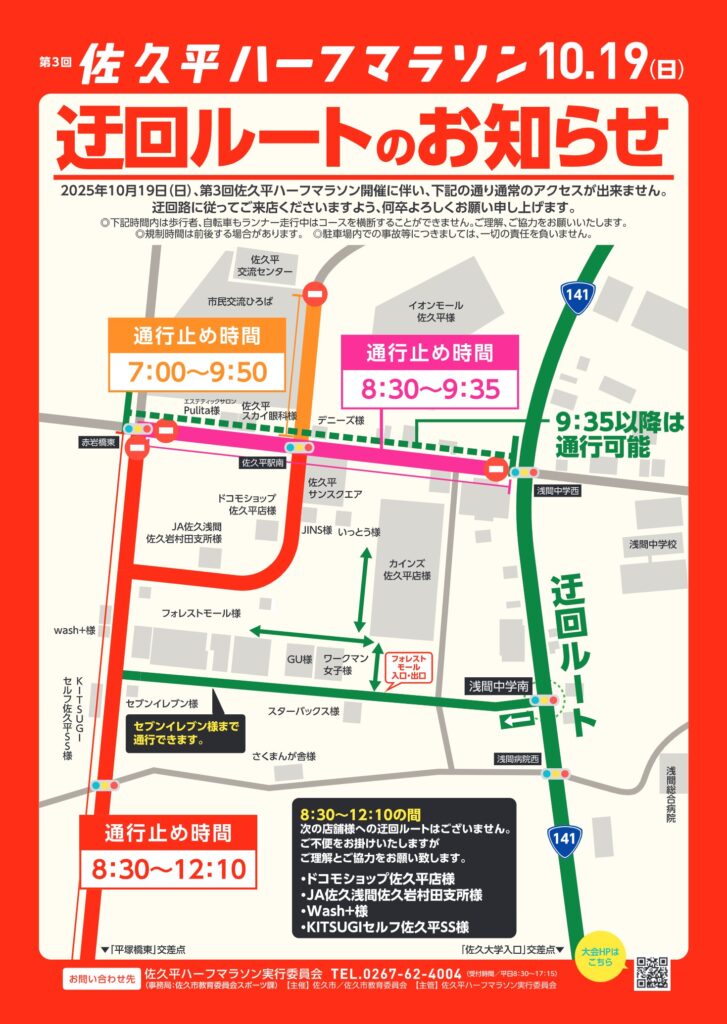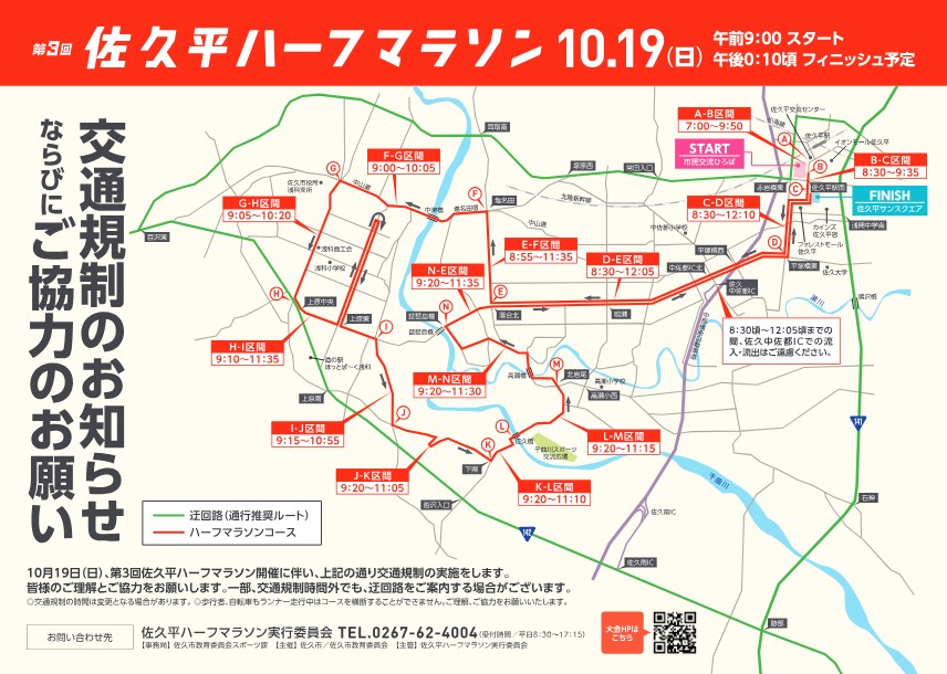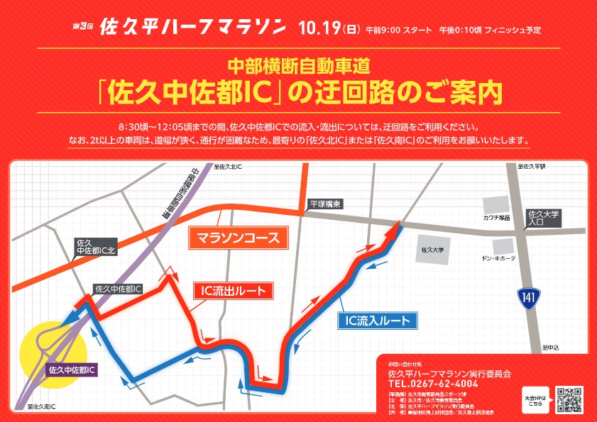 10月19日(日)、第3回佐久平ハーフマラソン開催に伴い、コース及び周辺道路において交通規制を実施いたします。